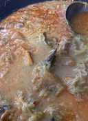 Masukkan daging berserta tulang aduk aduk sampai wangi lalu masukkan santan tambahkan 1liter air atau secukupnya masukkan garam dan sedikit gula aduk. 2 lembar daun salam. Masukkan tahu dan sayuran.