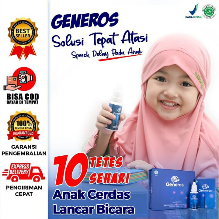Generos merupakan suplemen vitamin untuk menutrisi otak yang terdiri dari 5 kebaikan alam yang khusus di formulasi untuk mengatasi speech delay atau terlambat bicara dan terlambat berjalan. Pada usia 18 bulan sebagian besar bayi dapat menggunakan kata-kata sederhana seperti mama atau dada. Generos merupakan suplemen vitamin yang terdiri 5 kebaikan alam yang khusus formulasi untuk mengatasi speech delay meningkatkan kecerdasan anak membantu meningkatkan daya ingat anak menambah daya tahan tubuh anak dan tumbuh kembang anak.